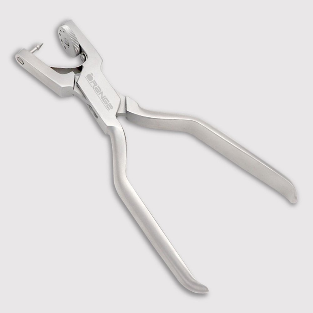Ainsworth Rubber Dam Punch from Orange can punch tear-resistant holes in every type of rubber dam, even through the thickest materials. The disc is easy to rotate and allows you to punch five different clean hole sizes, from the smallest tooth to the largest molar. Allows saliva free treatment and protects the patient during treatment against swallowing or aspiration of amalgam and crown residues, pathogens and liquids. The strong stainless steel looks brand new even after heavy use and the sturdy material allows the piercing point to remain sharp.