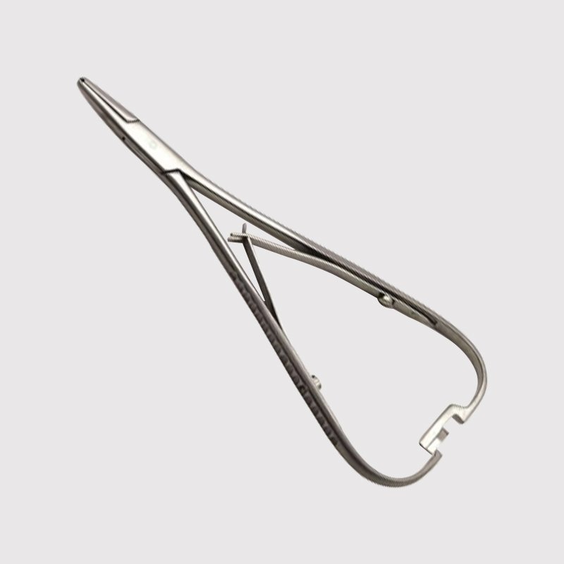 Elastic Placing Mathieu Pliers With Hole features a groove at tips for non-slip placement of elastic ligatures.