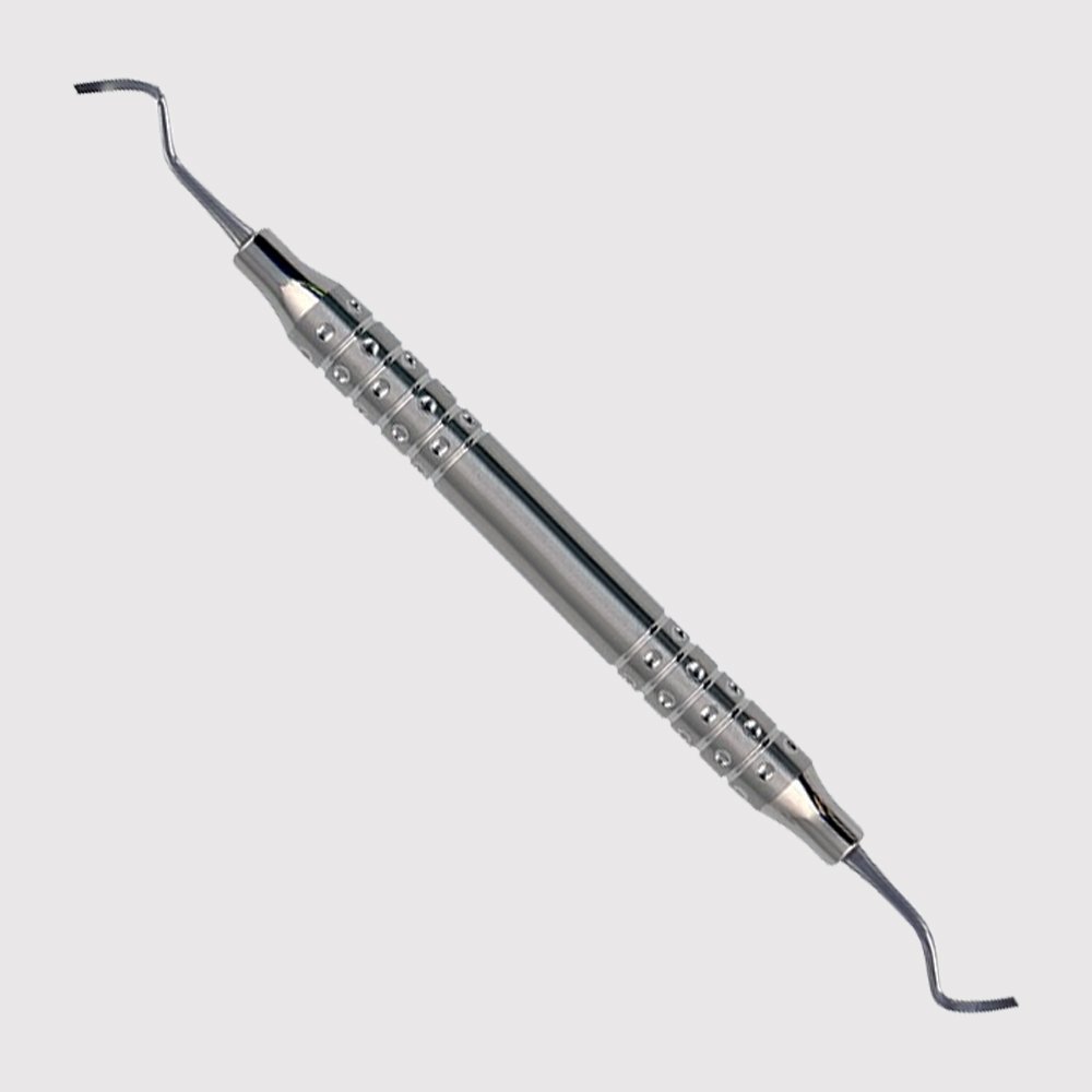 Margin Trimmer are used to make proper bevel on enamel margins made from stainless steel. Similar to a hatchet except the cutting edge angled and the blade is curved and these instruments are made from high-carbon stainless steel, then hardened for the ultimate in sharp edge retention and durability. Margin Trimmers are very unique, they have large diameter and light weight handle for maximum comfort, they are also used to reduced hand fatigue and increased control.