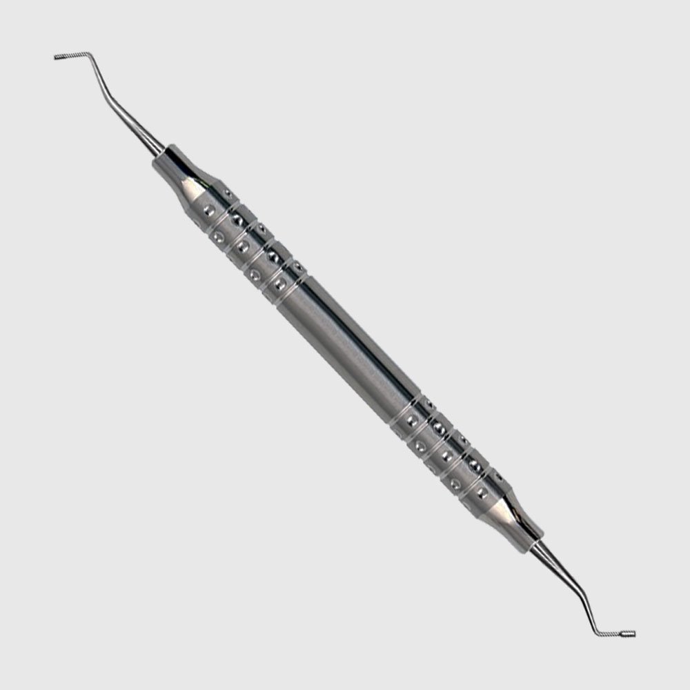 Marquette Plugger 0/1 serrated is a double-ended (1.0 mm – 1.4 mm) dental instrument which is used to pack amalgam or other filling materials into cavity preparations.