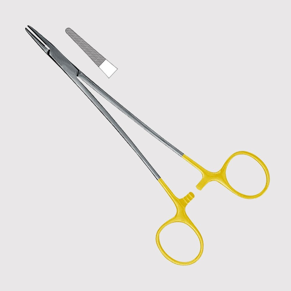 Mayo Hegar Needle Holder 180mm, TC is used to grasp and guide the needle when suturing.