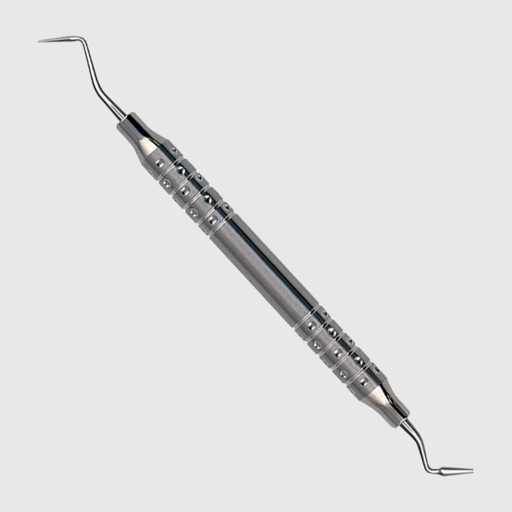 A condenser which is also known as a plugger, it is a restorative instrument that’s used to pack amalgam or other filling materials into cavity preparations. Pluggers/condensers are also available in a wide range of combinations with plain or serrated tips and the terminal shanks are angled at 50° to the center line of the instrument. Condensers are very unique, they have large diameter and light weight handle for max comfort, they are used to reduced hand fatigue and increased control.