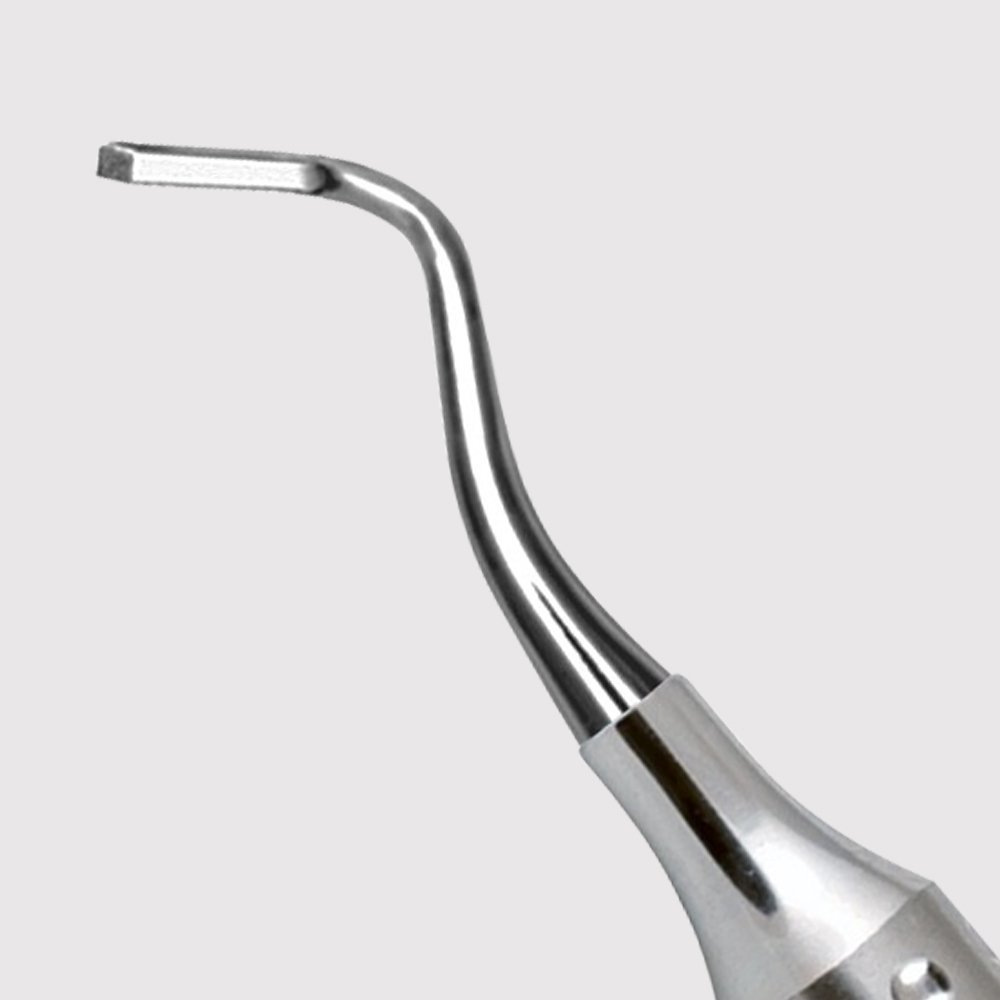 Ochsenbein 3 periodontal chisel for reshaping bone. The semi-circular notches are beveled on each side and Ochsenbein 3 periodontal chisel can also be used for reflecting flaps or removing secondary palatal flaps.