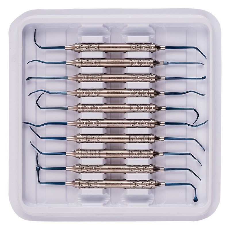 Each instrument in this advanced kit is coated with blue titanium, offering several clinical benefits. The coating provides enhanced corrosion resistance, reduced light reflection, and increased surface hardness, making the tools more durable and comfortable to use during long procedures. The vibrant blue finish also improves visibility, helping clinicians distinguish instruments more easily in sterile setups.