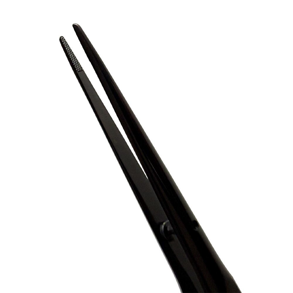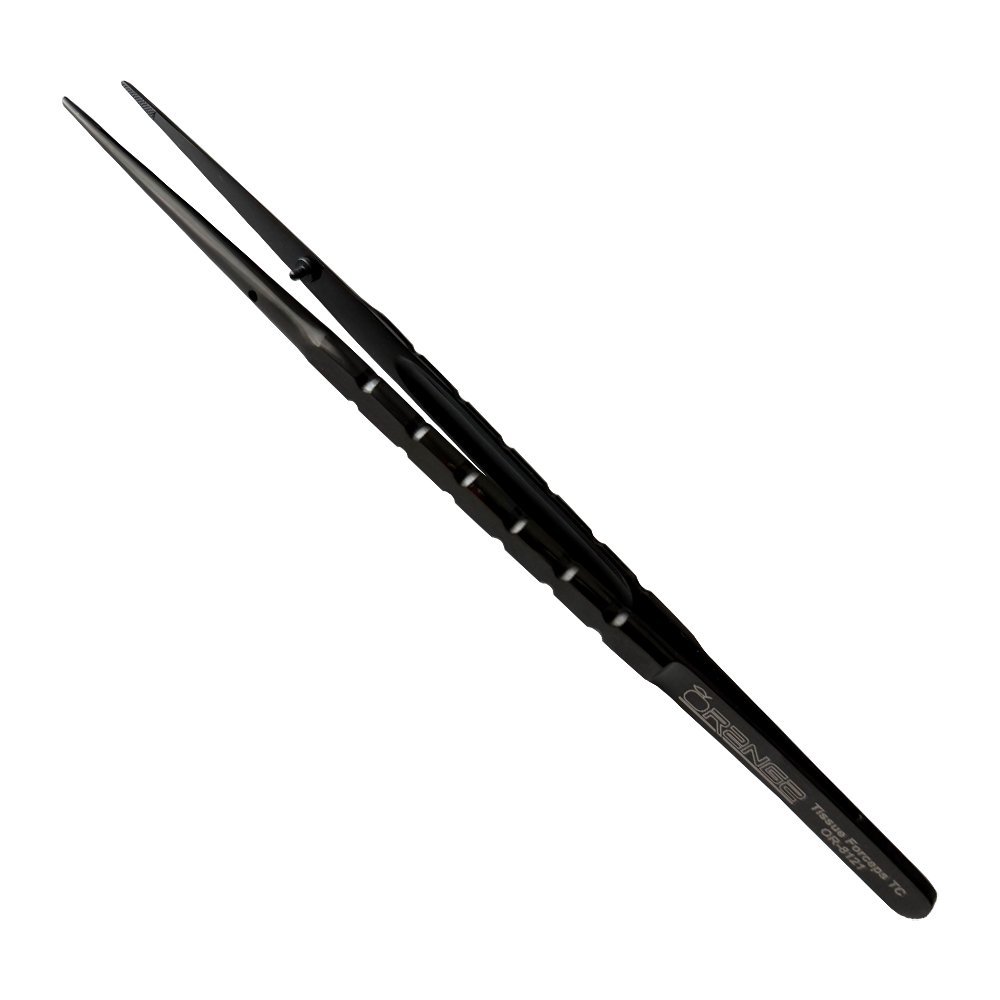 Tissue Forceps TC with black titanium coating are surgical instruments used to grasp, hold, and manipulate tissues during medical and dental procedures. The black titanium coating provides a non-reflective surface that reduces glare from the dental operating light, improving visibility and precision in the oral cavity.