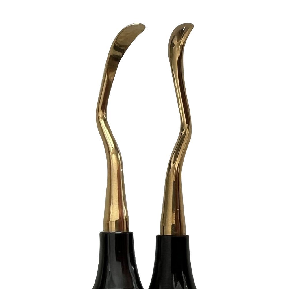 A ceramic plasma gold coating of Titanium Nitride is applied to the tips of medical-grade stainless-steel instruments to prevent corrosion, maintain sharpness, and reduce wear. The handle also features a ceramic plasma black coating of Titanium Nitride.
